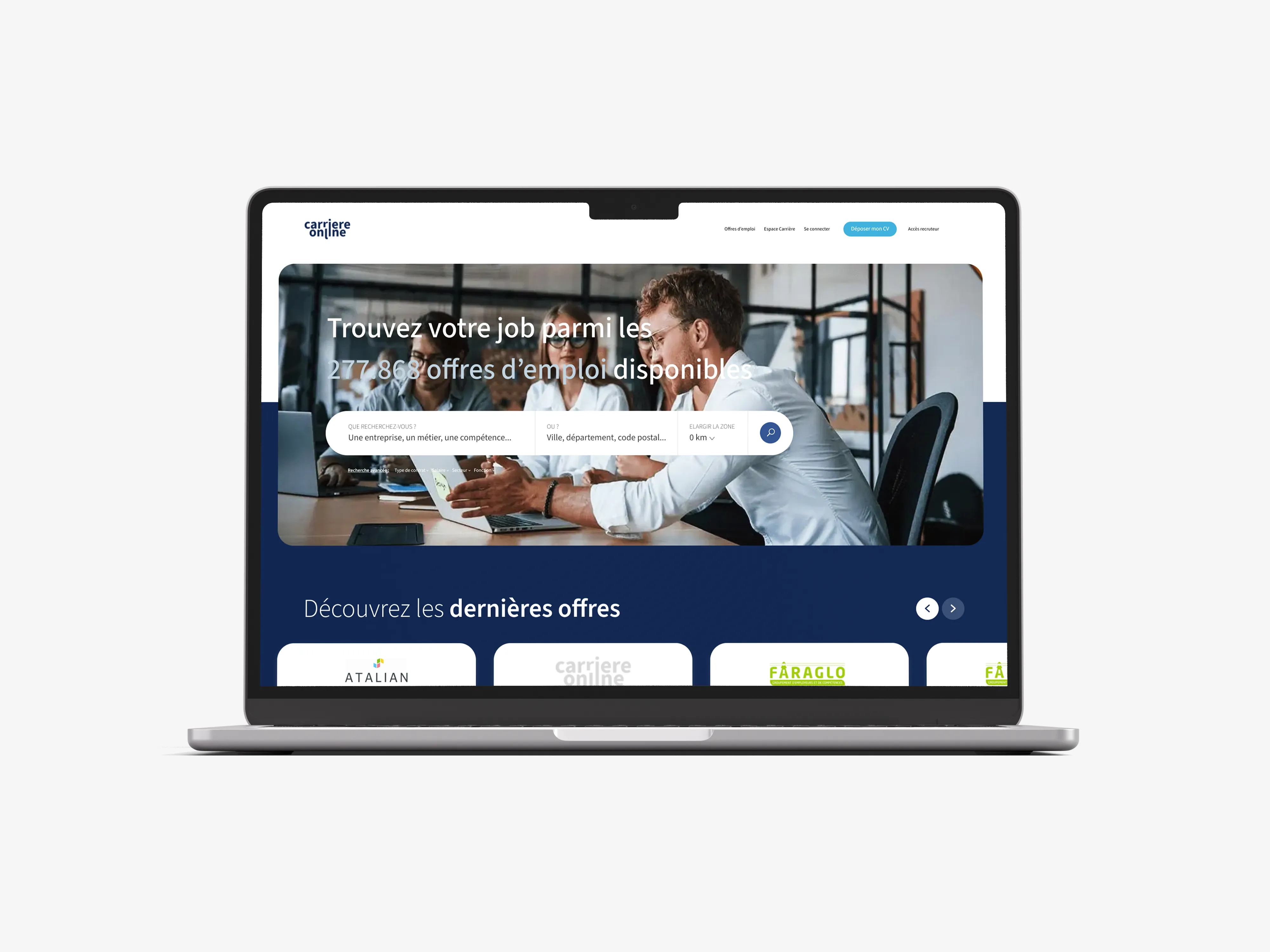 Moderniser et optimiser le site Carrière Online pour offrir une meilleure expérience utilisateur, faciliter la recherche d'offres d'emploi et simplifier la gestion des données pour les administrateurs.